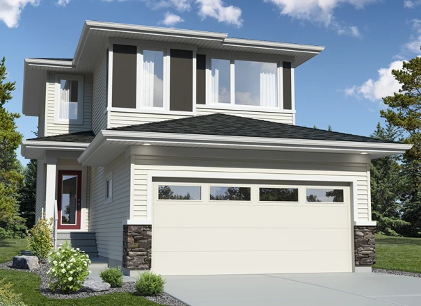 The Eclipse-d is a stunning two-storey duplex home that spans 1,505 square feet. This beautiful home boasts of an incredible kitchen, 3 bedrooms, 2.5 bathrooms, and a 2nd floor laundry. As you step into the foyer, you'll be welcomed into the open-concept main floor that comprises a great room with an optional fireplace, a dining nook, and a kitchen with an eat-in island. At the rear of the home, you'll find a closet for storage and a half bathroom tucked away for privacy. Upstairs, you can retreat to the cozy bedrooms, with the Primary Bedroom featuring a walk-in closet with ample storage and an ensuite that includes double sinks. You have the option to add a side entry and develop the basement area to your liking with the various floor plan options available for this home.